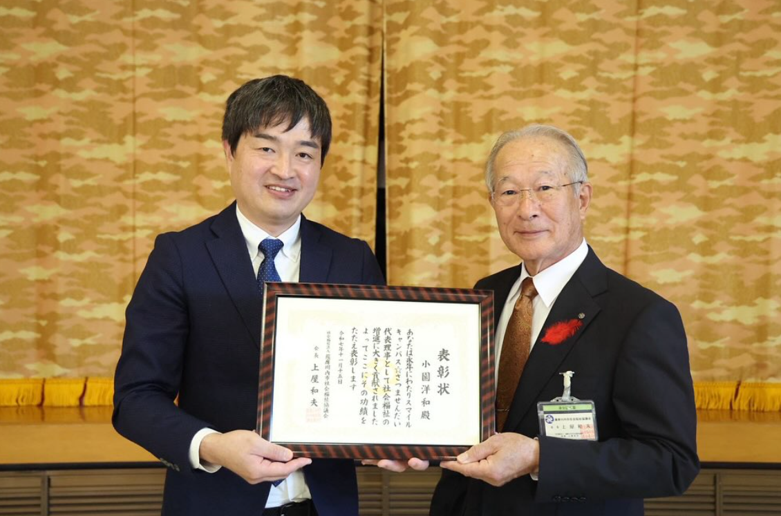 11月15日(土) 薩摩川内市社会福祉協議会・薩摩川内市高齢者クラブ連合会が主催する「社会福祉フェスタ」が薩摩川内市総合福祉会館にて開催され、第一部の社会福祉表彰にてスマイルキャンパス代表理事の小園洋和が福祉功労者表彰を受賞しました。